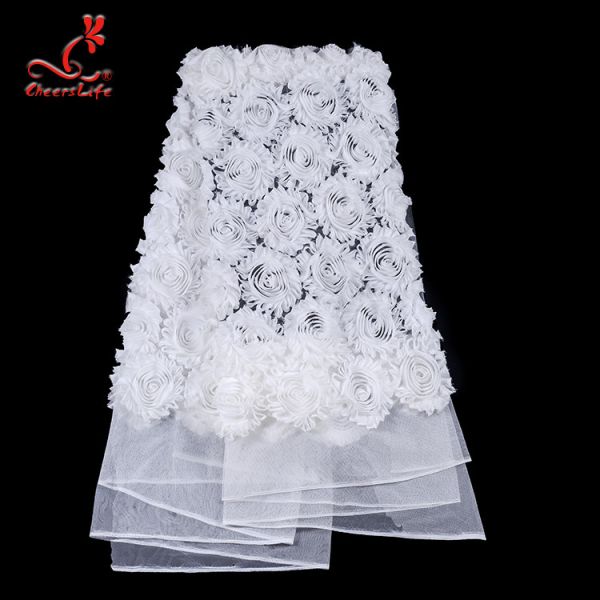 White 3d embroidery fabric bussy floral lace for wedding dress with swiss net