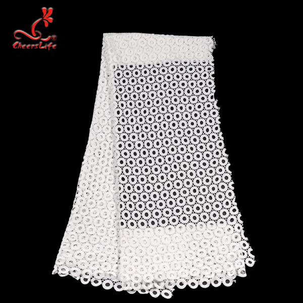 White Guipure Lace Water Soluble geometric shape embroidery fabric with 100% polyester milk yarn